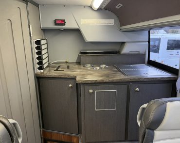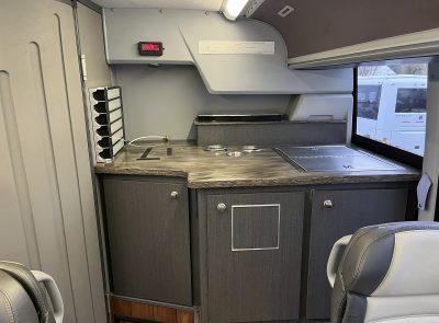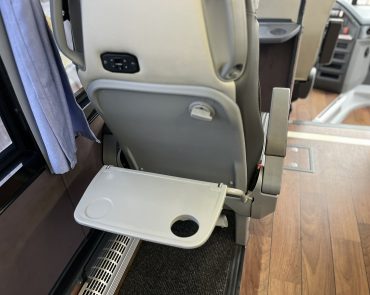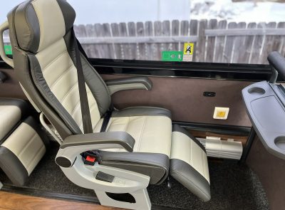 21 passengers in rear along with a beautiful coffee station